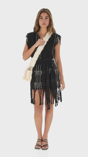 Handcrafted in Oaxaca using traditional pedal looms, this artisan bag measures 16 x 13 x 7 cm and features a stunning blend of aqua and black tones. Made from recycled organic cotton with a woven exterior and canvas lining, it includes a removable strap for versatile carrying. Each piece is uniquely handmade by local artisans, ensuring no two bags are identical—variations in weave patterns and textures make yours one-of-a-kind. Care for your treasure with gentle hand washing in cold water. Proudly made in Mexico.