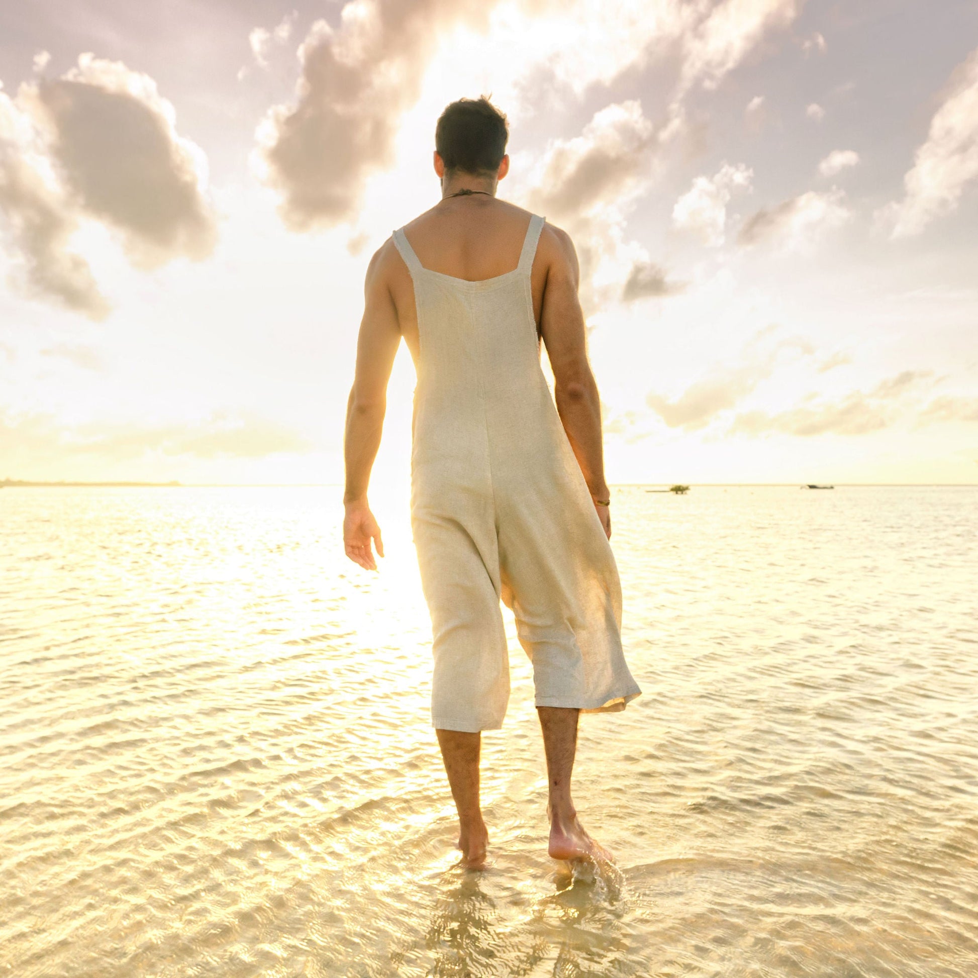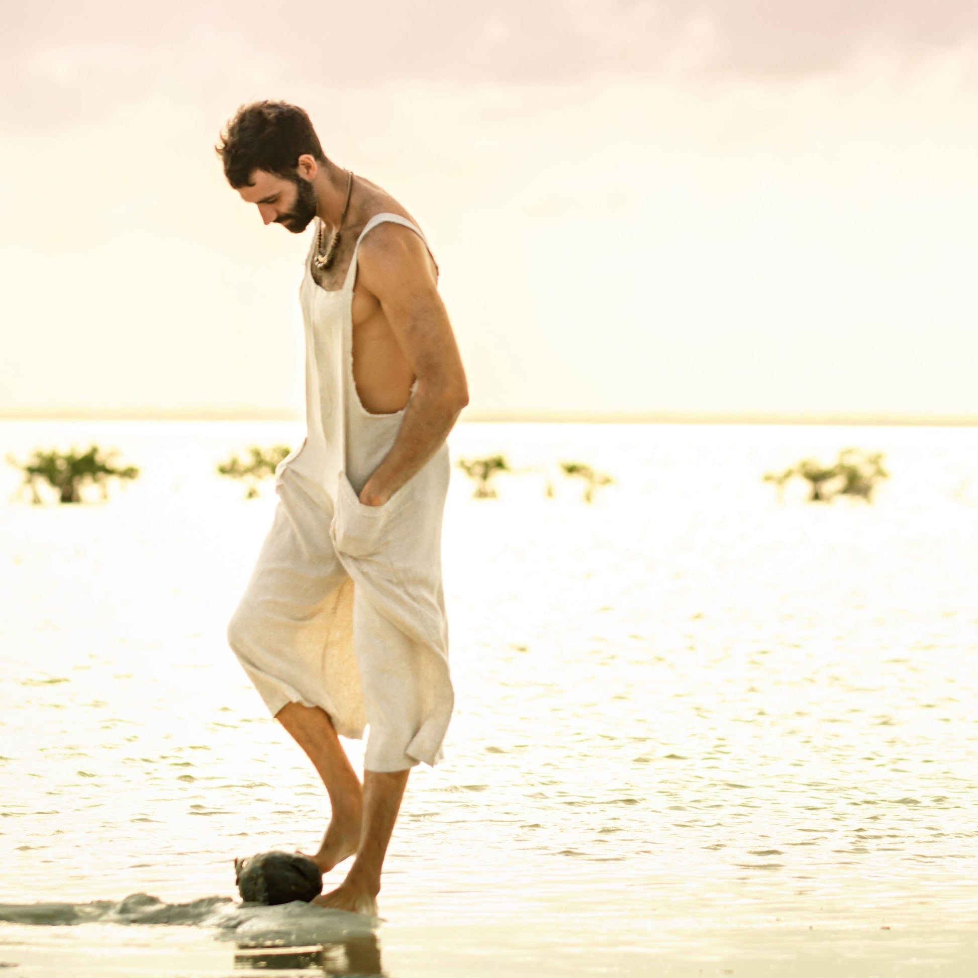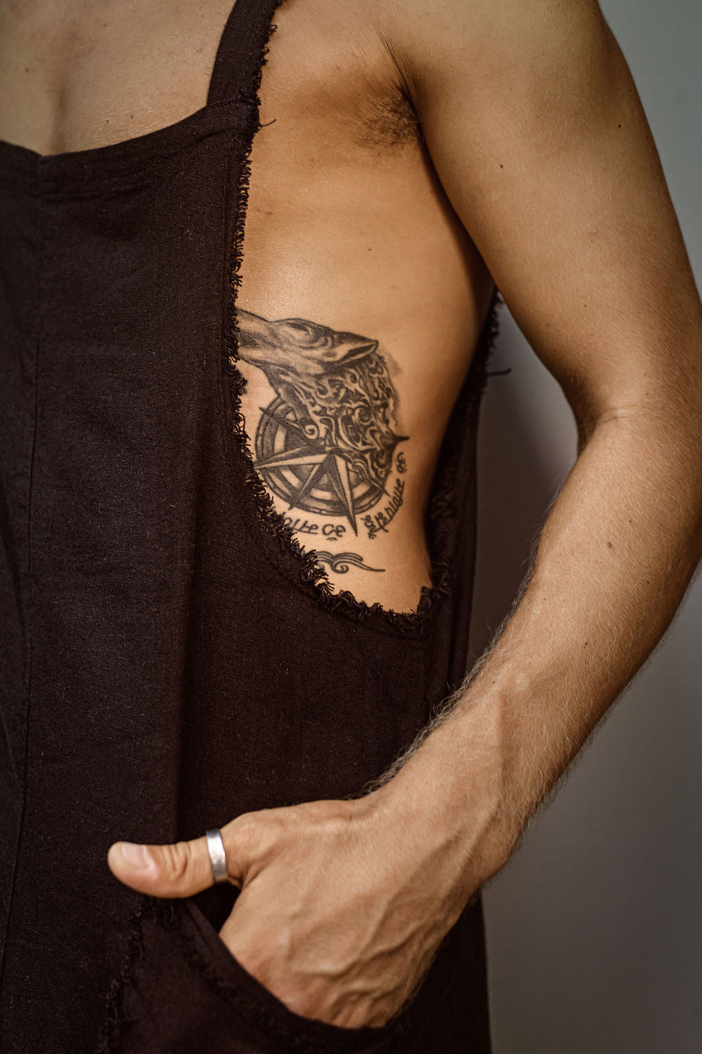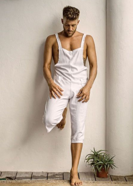 Mono de pierna amplia con bolsillos laterales. Bordes deshilados. Unitalla.