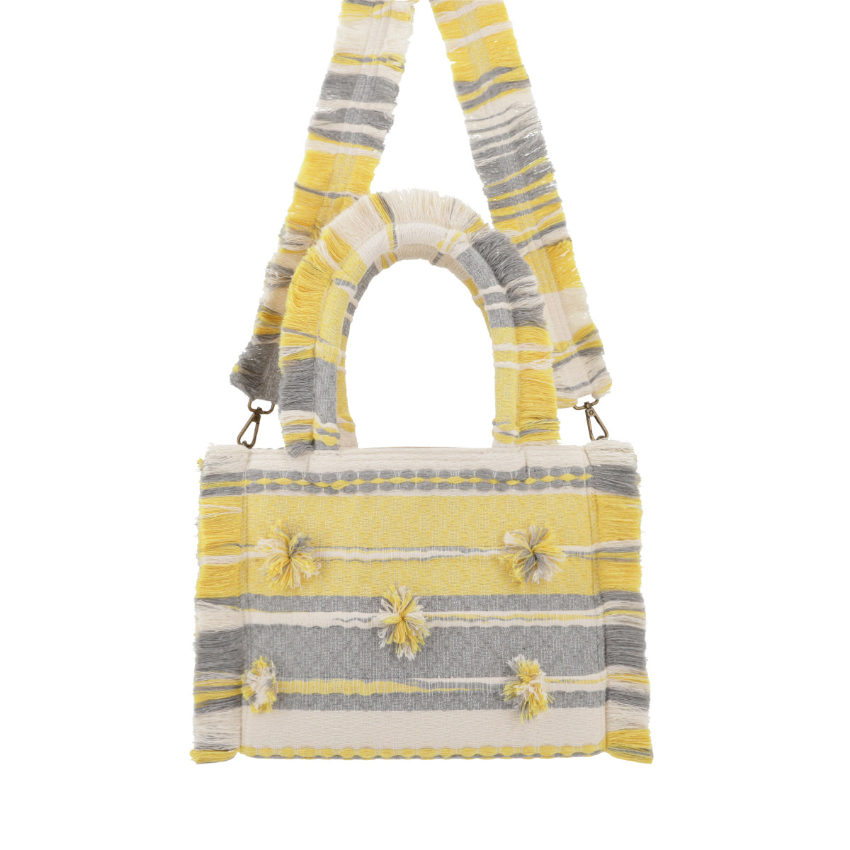 Discover the charm of authentic Mexican craftsmanship with this Medium Poka Amaya—a vibrant canary yellow and grey tote handwoven by skilled artisans in Oaxaca using traditional pedal looms. Crafted from recycled organic cotton with a durable canvas-lined interior, this beauty features a secure inner zipper pocket and removable straps for versatile styling. Each piece is wonderfully one-of-a-kind, with natural variations that celebrate its handmade heritage. Simply hand wash in cold water, and your new favorite bag is ready for adventures. Includes a protective dust cover. Made in Mexico with love and intention.