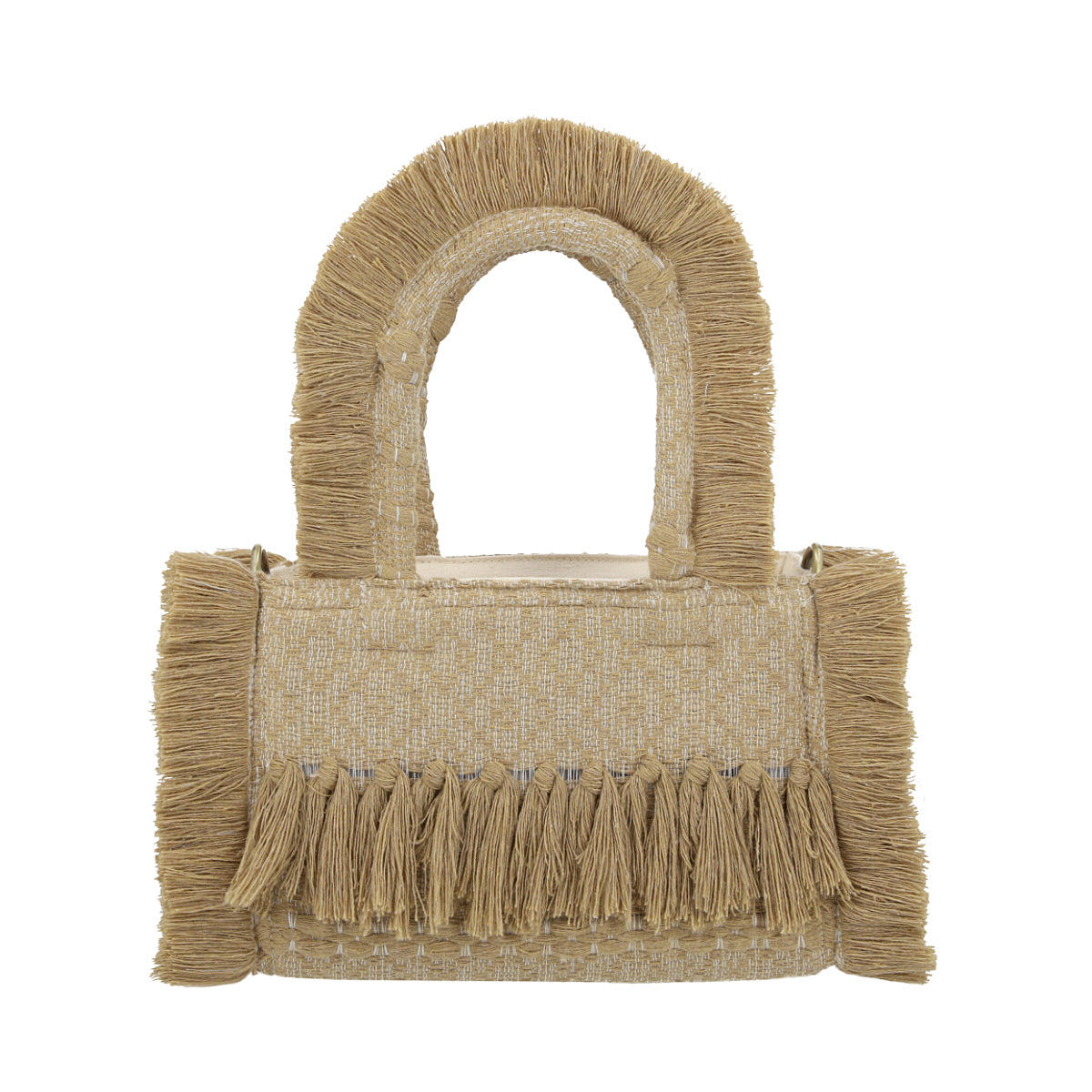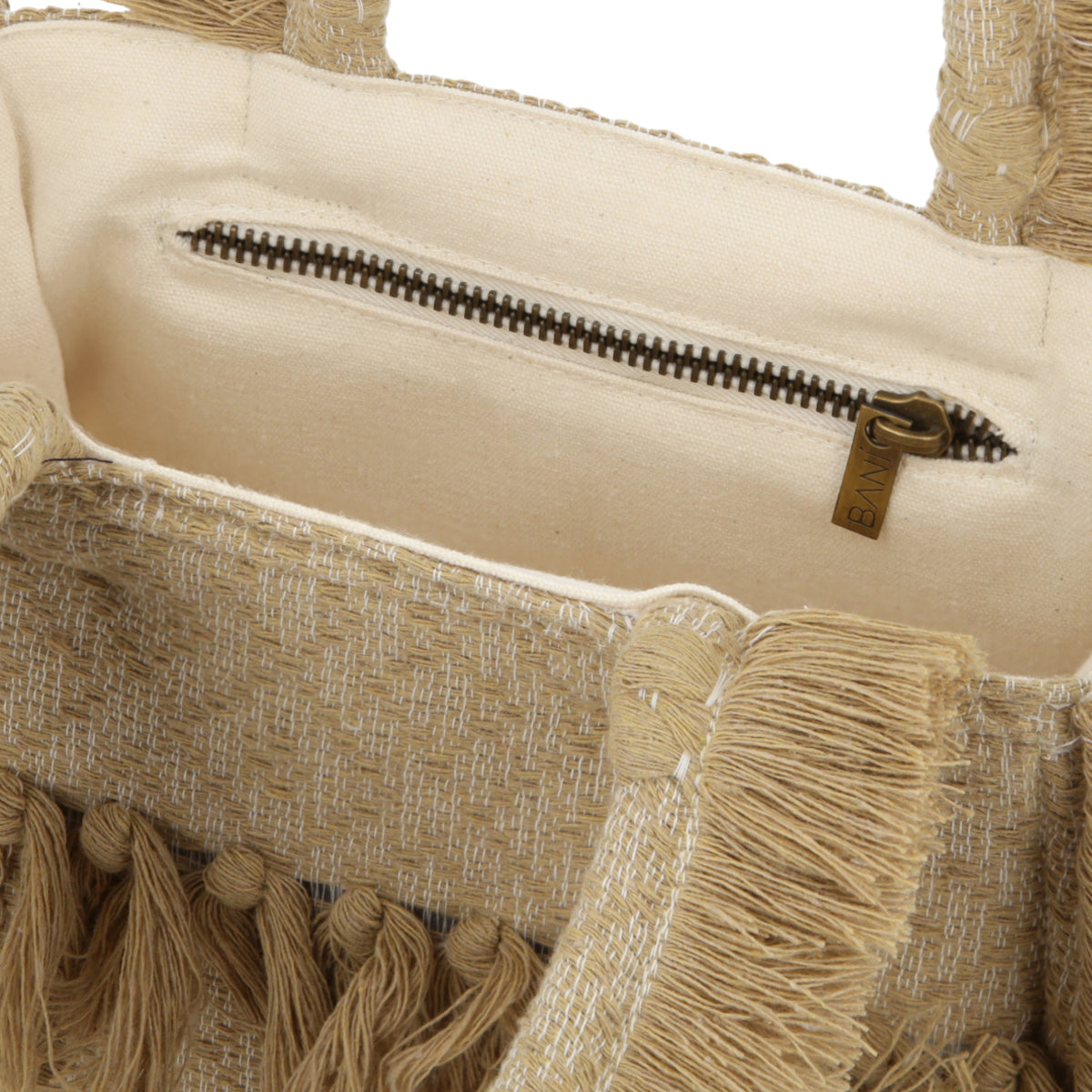 Meet your new favorite carry-all! This Mini Poka Beili is a charming handwoven treasure crafted by skilled artisans in Oaxaca using traditional pedal looms. Measuring 22 x 18 x 11 cm, it's the perfect size for daily essentials. Featuring a stunning beige and white palette, recycled organic cotton construction, and a durable canvas-lined interior, this beauty comes with a convenient interior zipper pocket and removable straps for versatile styling. Since each piece is individually handmade, yours will be beautifully one-of-a-kind. Simply hand wash in cold water to keep it looking fresh. Proudly made in Mexico.